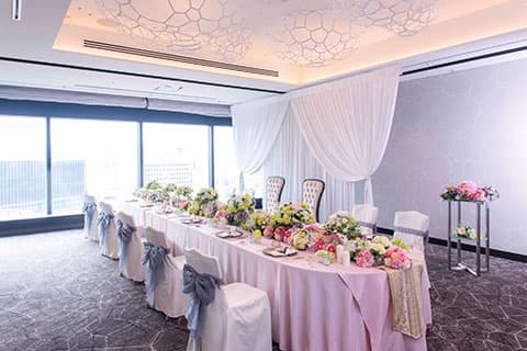 「ウィンドーズ」は、東には生駒の山々を、西には淀川から六甲まで見渡せる素晴らしい眺望がお楽しみいただけます。また、水の泡をイメージした天井照明の柔らかな光が様々な影を落とし、昼も夜も感動的な美しさを堪能できます。地上145メートルの高さから大阪の絶景を堪能いただける空間で、ゲストと一生の思い出になる1日をお過ごしいただけます。