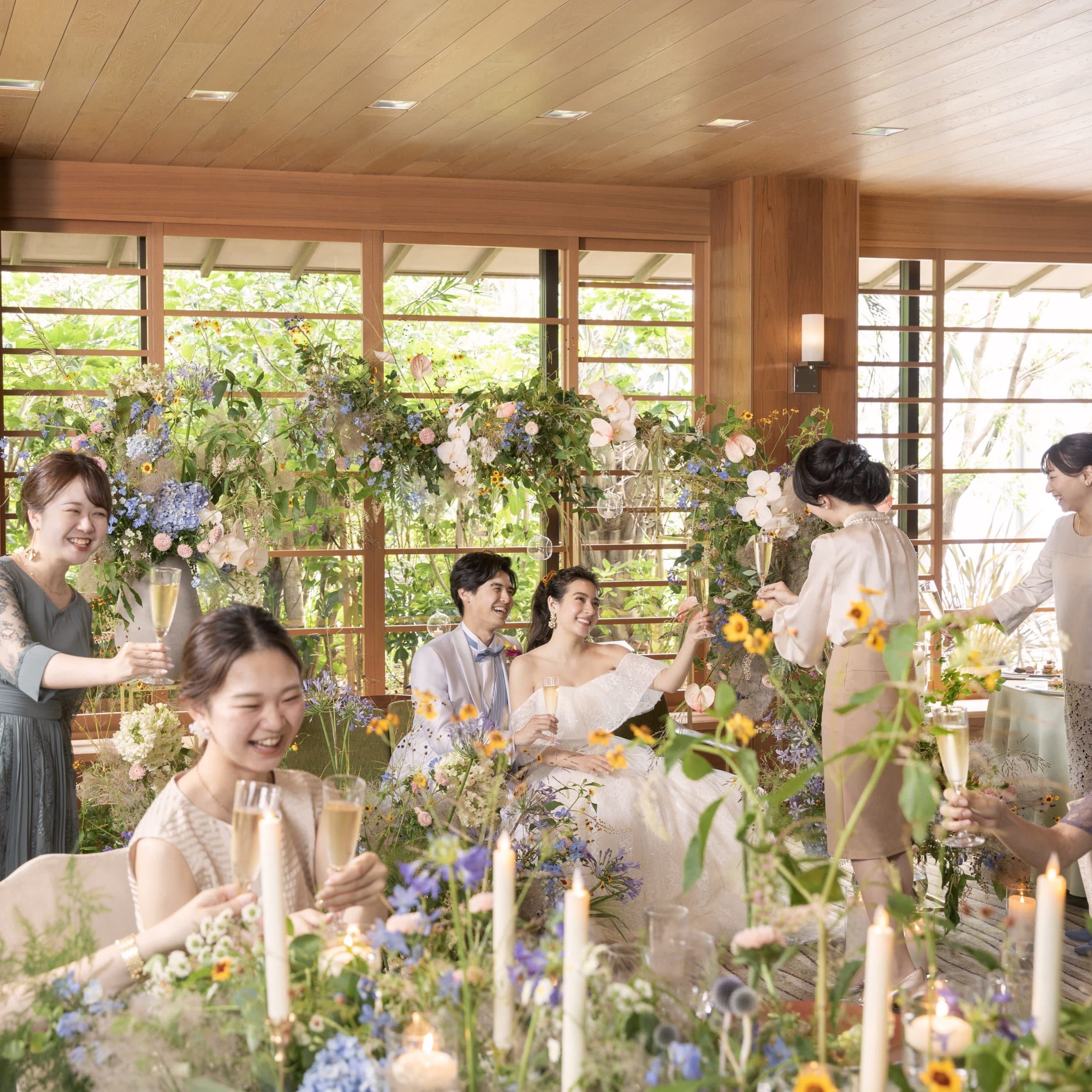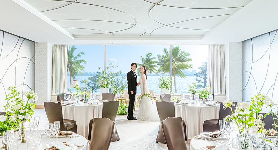 あたたかな陽光と、正面に佇む清々しい水のせせらぎが、おふたりの永遠の誓いを優しく見守ります。
