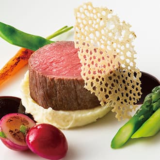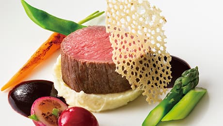 牛フィレ肉のローストポムデュセスと春野菜