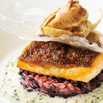 ドライ味噌をアクセントにした真鯛のソテー
