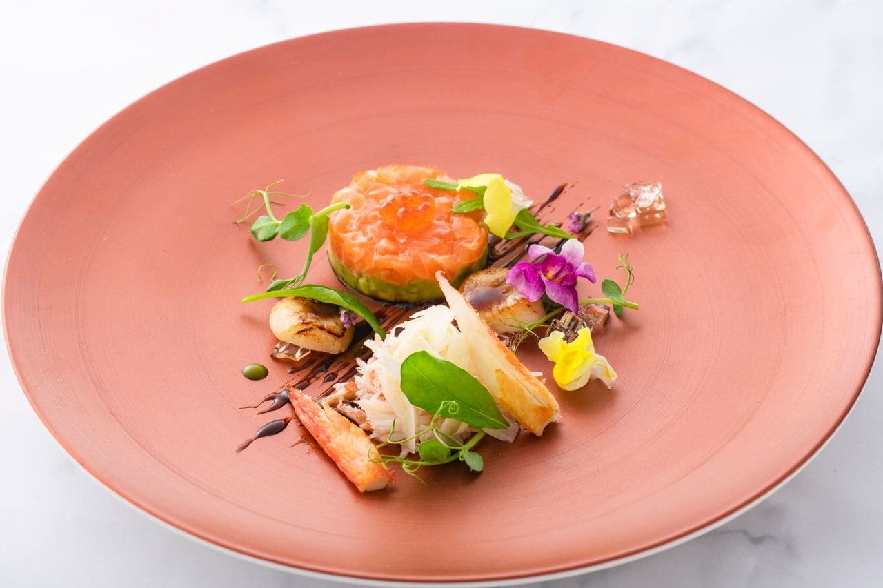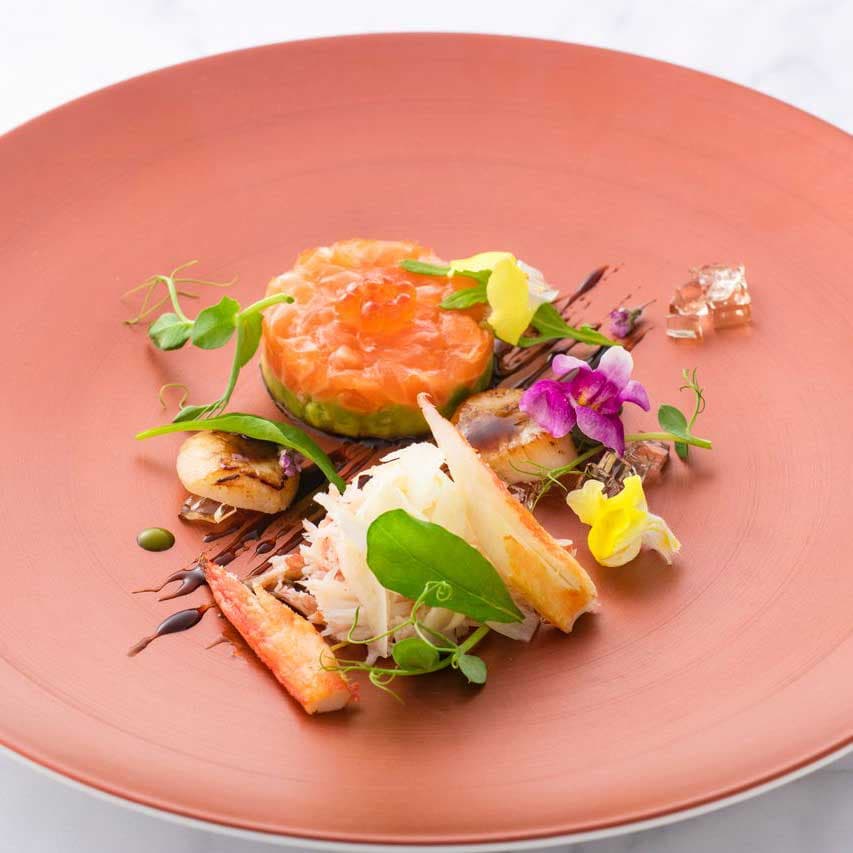 サーモンとアボカドのフォンダン ずわい蟹とフェンネルのシェイブ
