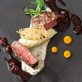 濃厚赤ワインソース ポテトムースと旬の野菜