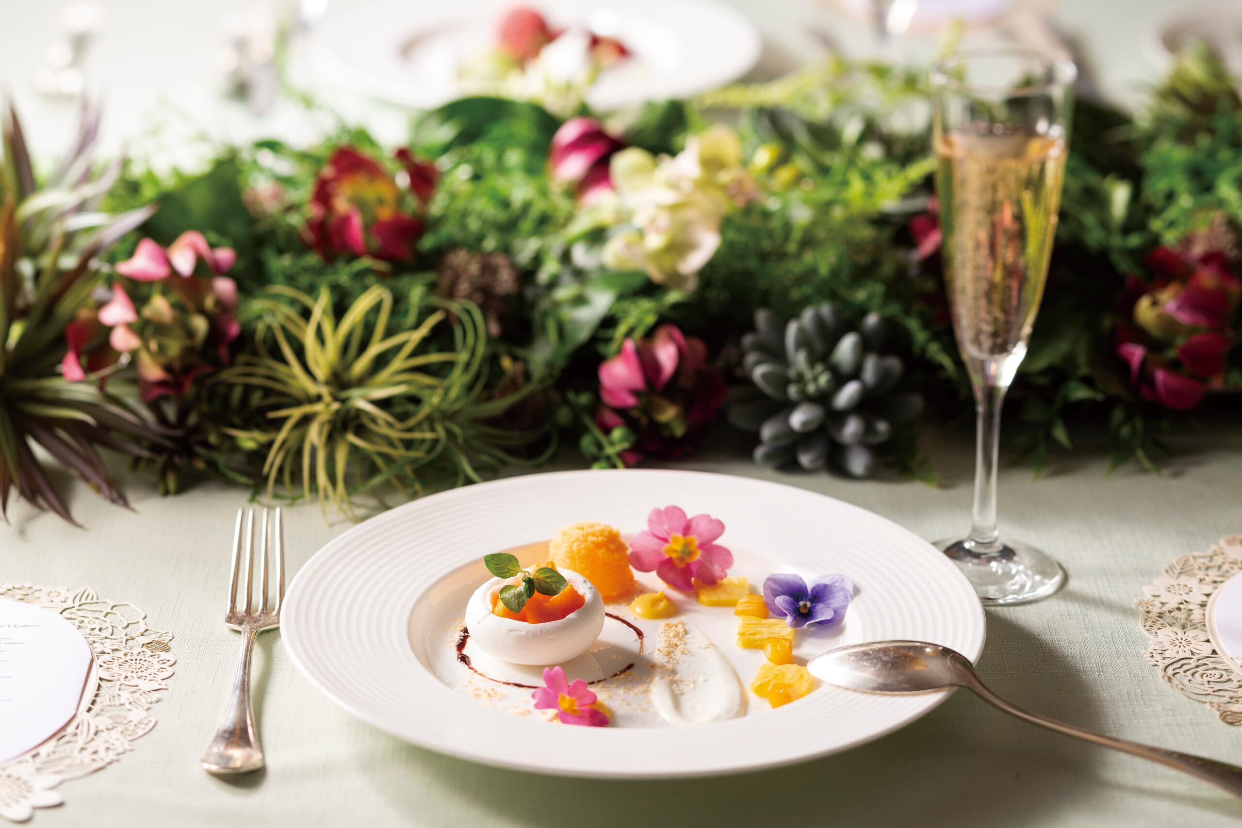 「決め手の一つはお料理でした」そんな嬉しいお声もいただく、五感でお楽しみいただけるお料理の数々を、ご提供いたします。