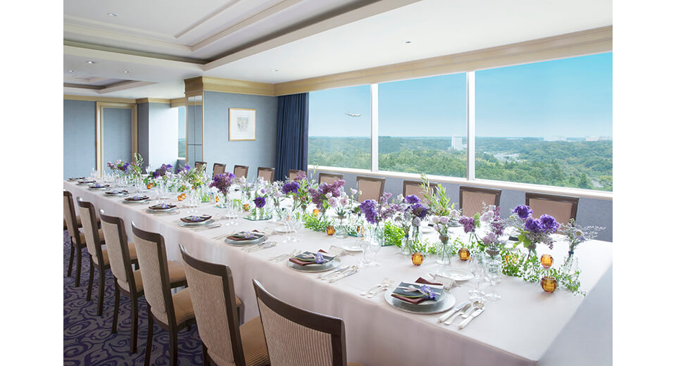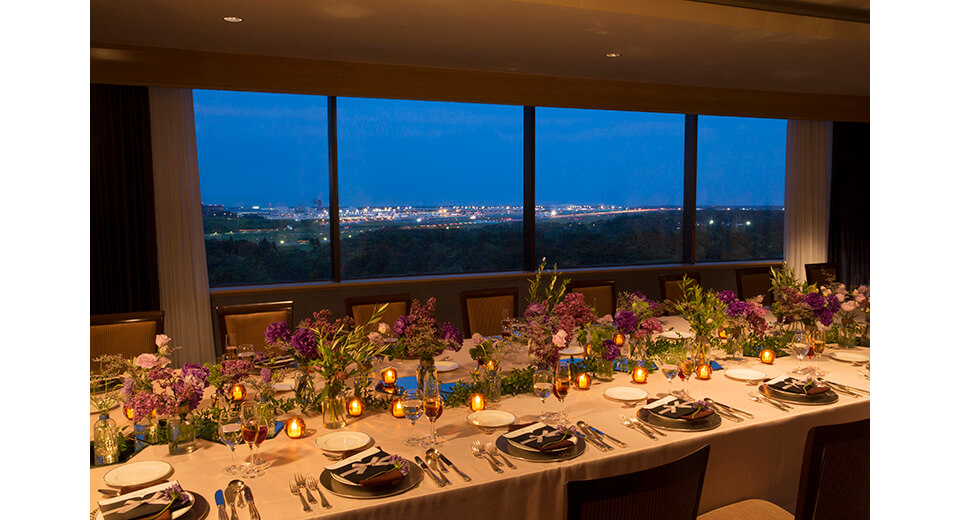 エアポートビューが正面に見える最高のロケーション。1.5次会などカジュアルなパーティーにも人気。