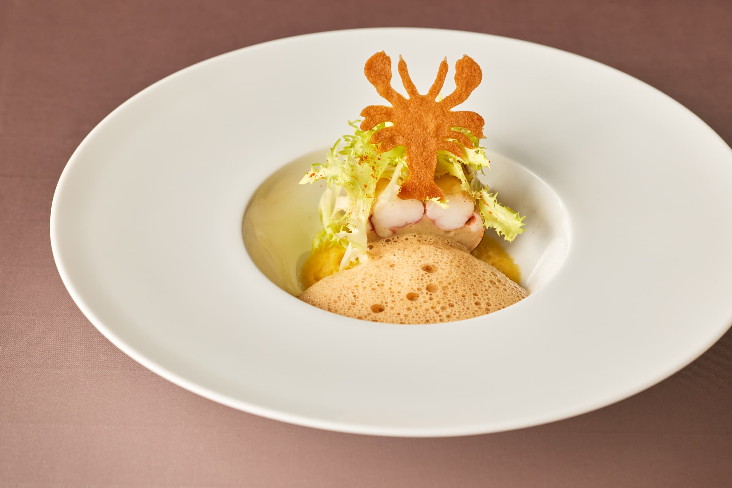 オマール海老のファルスと温かい甲殻類のジュレ